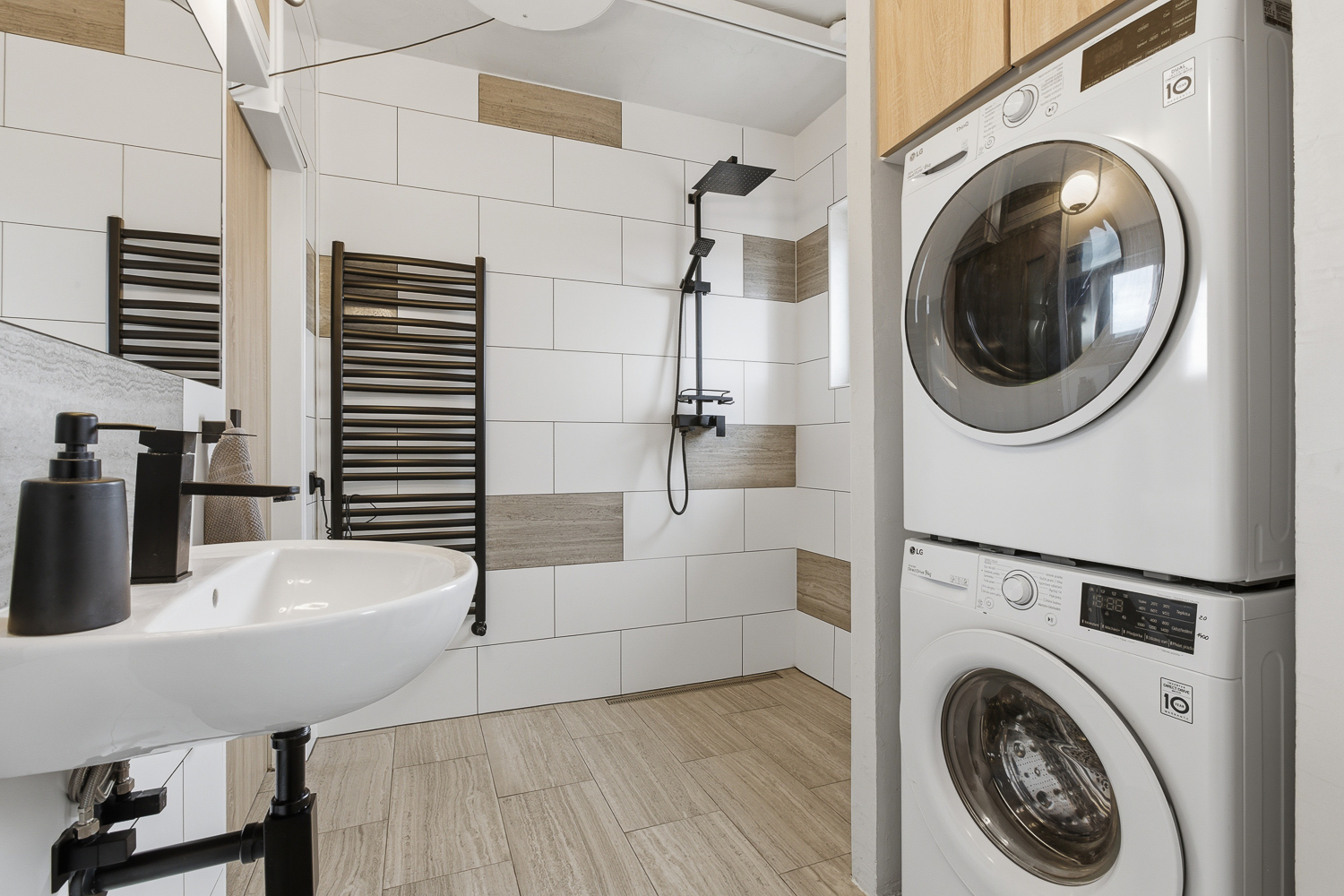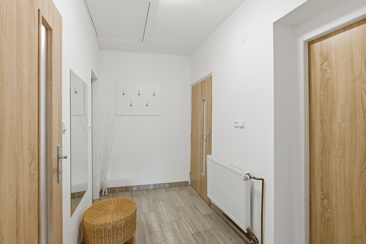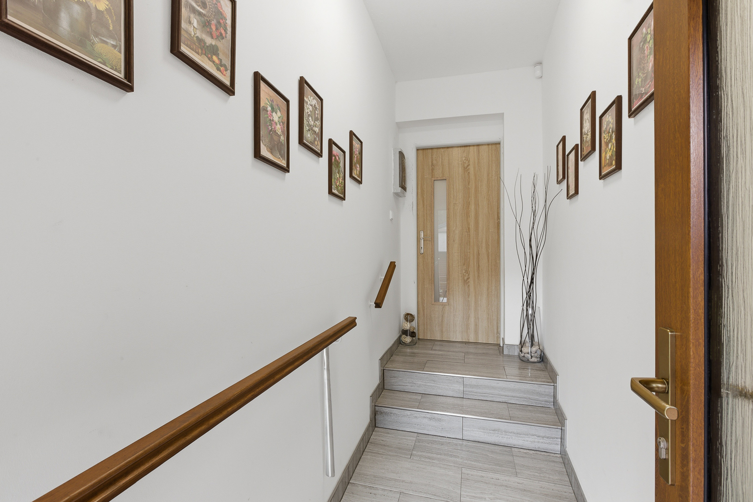 • Horní byt (2+1 | 114 m²): Velkorysý byt se vstupem na půdu. Tato jednotka je navíc oficiálně zkolaudována pro kosmetické služby (manikúra, pedikúra apod.). Můžete zde tedy okamžitě začít provozovat své podnikání bez nutnosti běhání po úřadech.