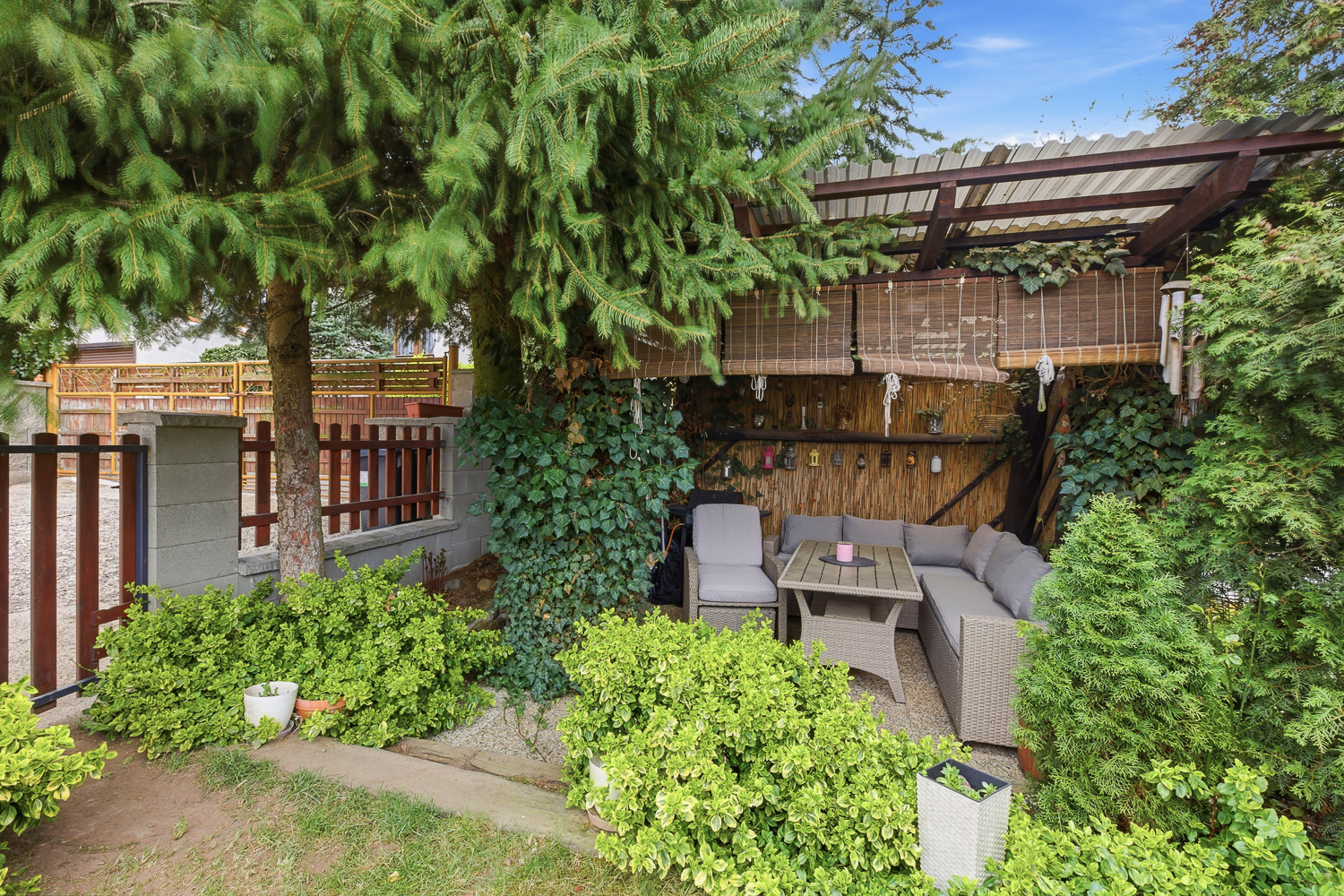 K domu náleží pozemek o rozloze 360 m², který je navržen pro radost, nikoliv pro dřinu. Najdete zde vzrostlou zeleň, která zajišťuje příjemné soukromí a klid od okolí. Pergolu, ideální pro venkovní posezení a odpočinek.